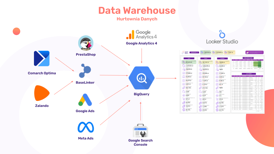 Prestashop, Comarch, Baselinker, GA4, Meta Ads, Google Ads, itp.